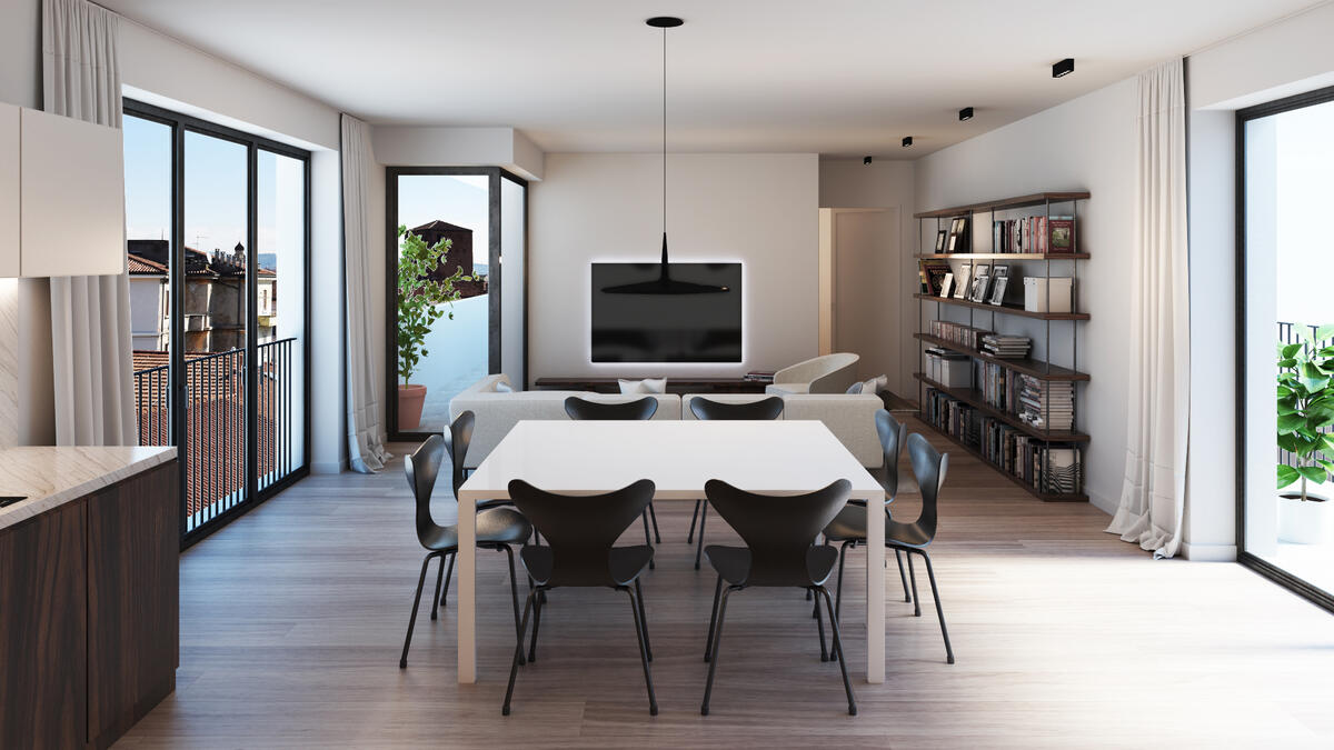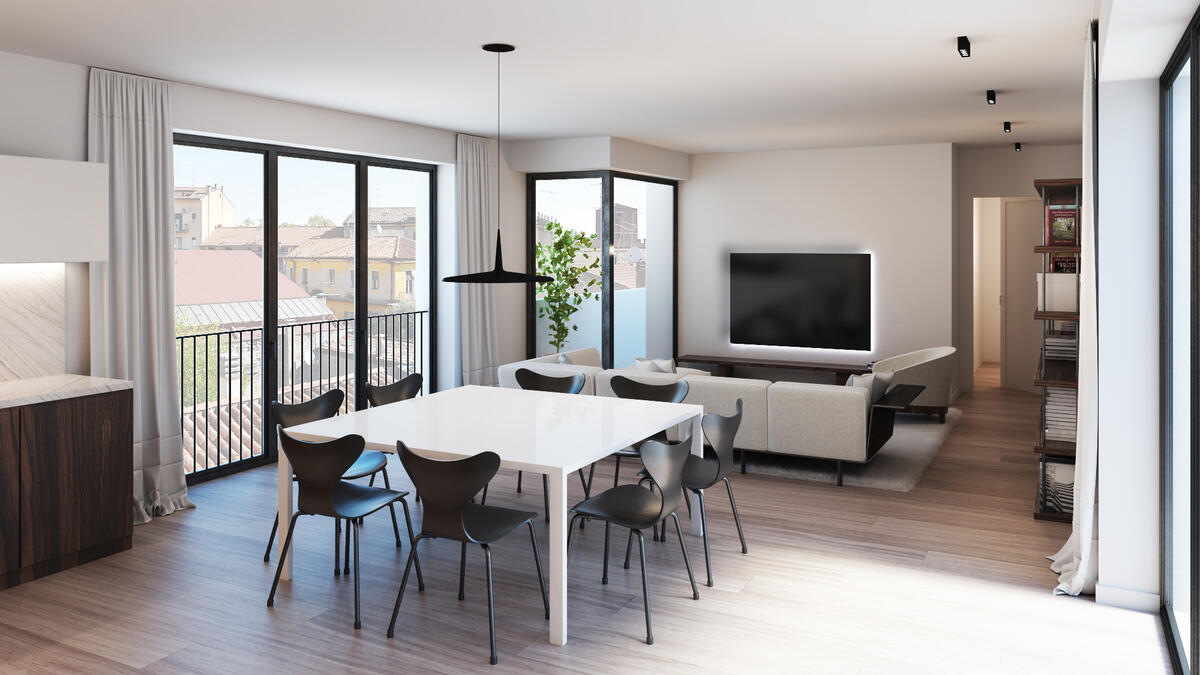 Attici Prestigiosi attici di nuova costruzione con terrazza privata e numerosi balconi.
