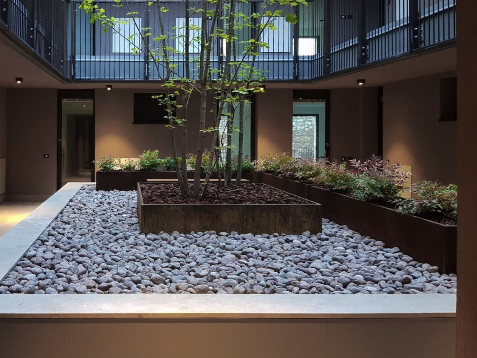 Dotato delle più moderne tecnologie per il risparmio energetico, Palazzo Mastino presenta 3 eleganti giardini interni, vere oasi naturali nel cuore della città in grado di offrire comfort e privacy agli appartamenti che vi si affacciano internamente.